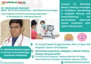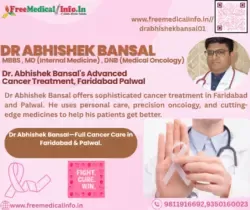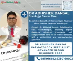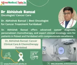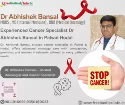 Dr. Bansal's, practice is conveniently located at Neelam Bata Rd, AC Nagar, New Industrial Township, Faridabad, Haryana 121001, Site -2 ( Near ESI Hospital ) Sector 8 Faridabad , Bansal Nursing Home, Sallagarh, Adarsh Colony, Palwal, Haryana 121102 making it easily accessible to people seeking top-tier oncological care. His previous experience includes substantial stints at Metro Heart Institute with Multispeciality. which solidified his status as a top oncologist. Dr. Bansal's unwavering commitment to his patients, combined with his extensive knowledge of oncology, make him a highly respected and sought-after medical professional in the region.