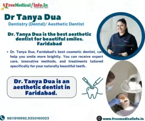 Currently working at Dentalys (D-72, 2nd Floor, Sector 85, Greater Faridabad, 121001), Dr. Tanya Dua offers excellent endodontic treatment in comfortable surroundings. In the realm of cosmetic and restorative dentistry, her innovative methods combined with a sympathetic approach build her credibility.
