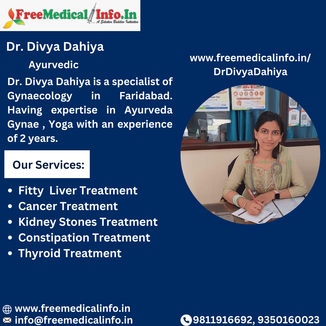 Meet Dr. Divya Dahiya, a gynaecology doctor in Faridabad and a two-year expert in Ayurvedic gynaecology and yoga. Her appointments cost 200 INR, making women's health care affordable, and she approaches the field with compassion. Dr. Divya Dahiya offers a comprehensive and fairly priced spectrum of gynaecological therapies in Faridabad that combine the wisdom of Ayurveda with yoga. Ayurvedic doctors in Faridabad.