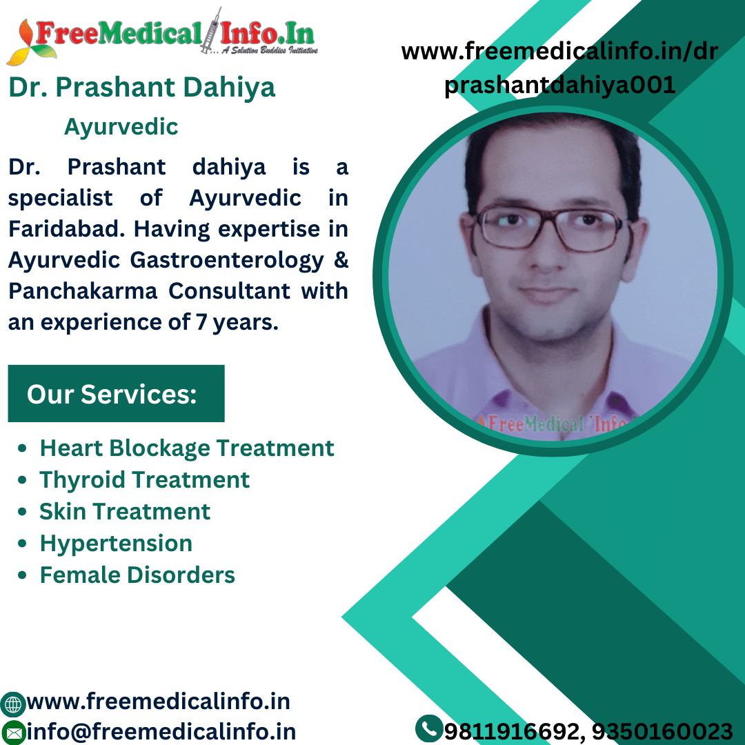Dr. Prashant Dahiya is a well-known Ayurvedic doctor in Faridabad who specialised in panchakarma and Ayurvedic gastroenterology. His seven years of experience and the inexpensive consultation fee of 300 INR complement his ability. Visit the Veda Ayurveda & Panchakarma Clinic (DAHIYA CLINIC). Dr. Prashant Dahiya will lead you down the path to well-being. Best Panchkarma Doctors In Faridabad.