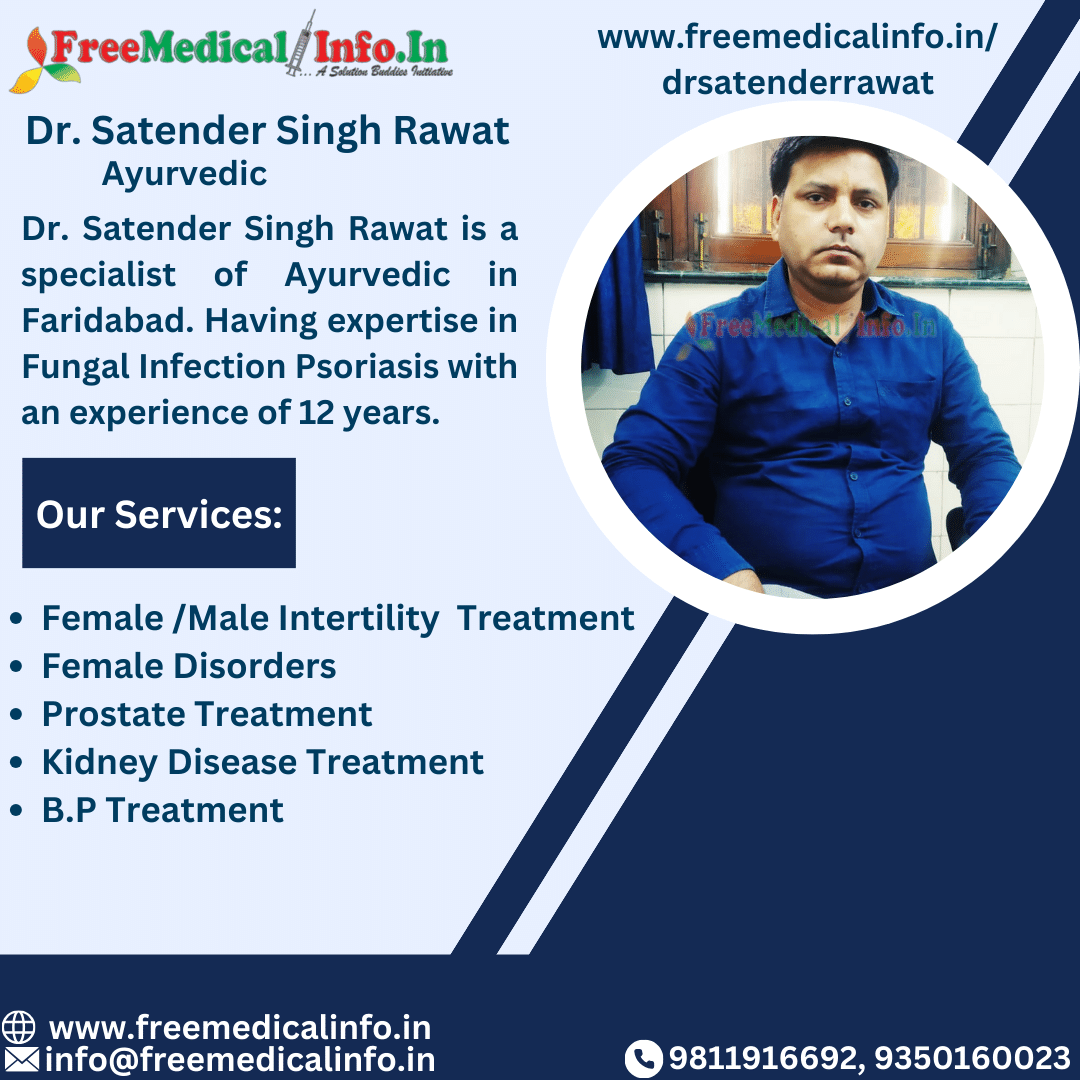 Meet Dr. Satender Singh Rawat, an Ayurvedic physician in Faridabad who has 12 years of experience treating fungus infections and psoriasis. Dr. Rawat is well-known in the field of holistic therapy due to his extensive knowledge and dedication.Dr. Satender Singh Rawat for thorough and compassionate Ayurvedic care in Faridabad. Ayurvedic doctor in faridabad.