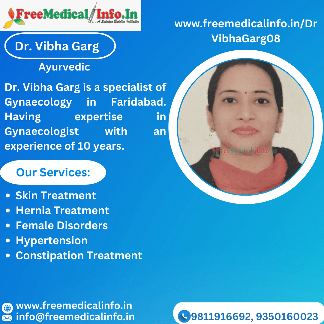 Allow me to introduce you to Dr. Vibha Garg, a prominent gynaecology specialist in Faridabad with ten years of experience. Visit her at Bajrang Chowk, Sector 37, Arya Nagar, Sarai Khwaja, Uttar Pradesh, Take advantage of her expertise for a consultation fee of 300 INR. Dr. Vibha Garg provides compassionate and tailored gynaecological care in Faridabad. lady ayurvedic doctors in faridabad.