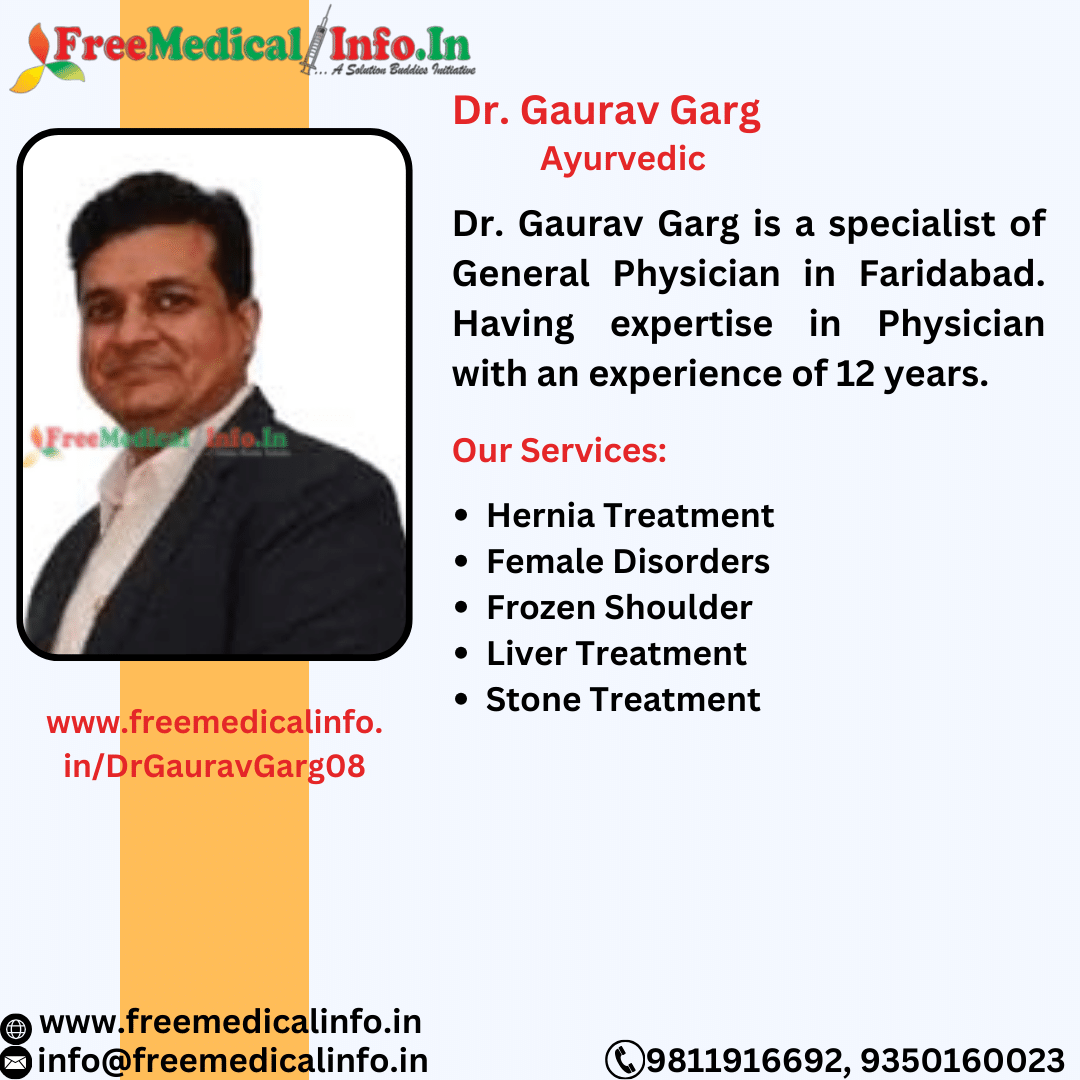 Dr. Gaurav Garg is a qualified general practitioner with 12 years of experience in Faridabad. For comprehensive medical care, go to his office at Bajrang Chowk, Sector 37, Arya Nagar, Sarai Khwaja, Faridabad. Dr. Garg is a trusted choice because of his abundance of experience and dedication to patient care. Take advantage of his knowledge for a variety of medical ailments. Top Ayurvedic specialist Faridabad