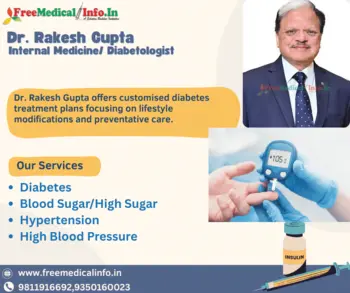 With more than 36 years of diabetology experience, Dr. Rakesh Gupta offers customised diabetes treatment plans focusing on lifestyle modifications and preventative care.