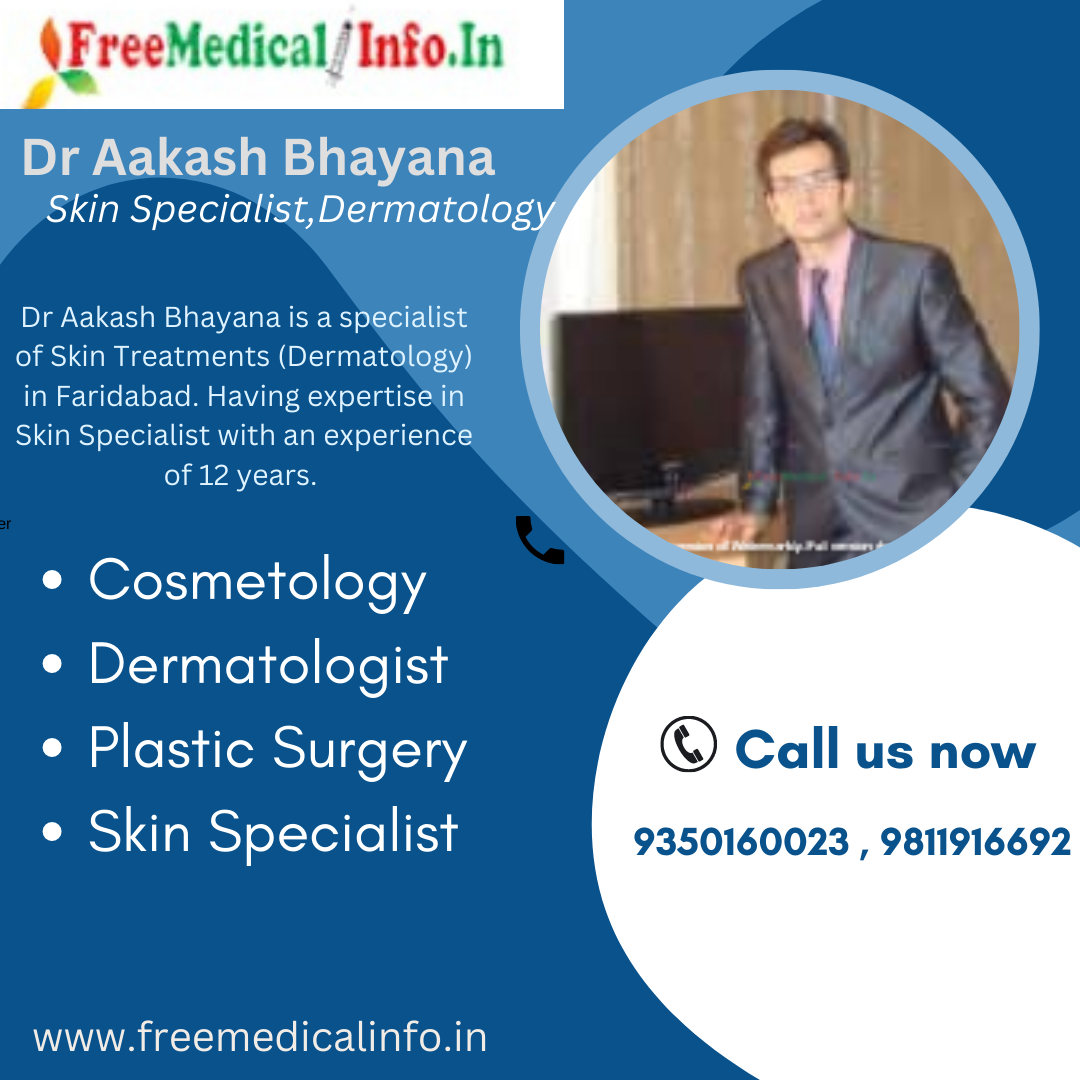 8. Dr. Aakash Bhayana : Dr. Aakash Bhayan is a well-known dermatologist with over 12 years of experience. He is known for her expertise in treating skin conditions like acne, psoriasis, and eczema. He also specializes in cosmetic dermatology and offers treatments like Botox, fillers, and laser resurfacing.
