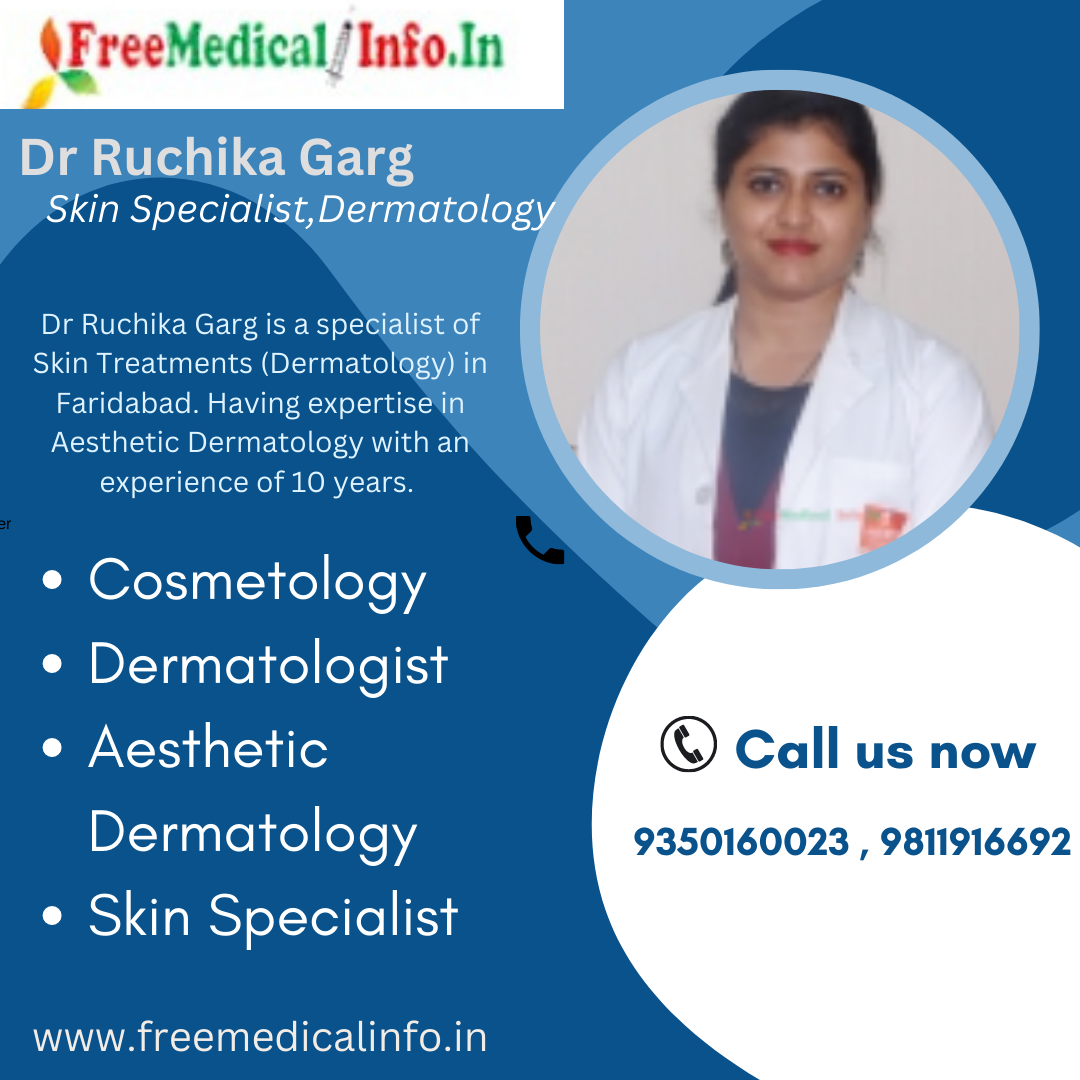 9. Dr. Ruchika Garg -Dr. Ruchika Garg is a renowned dermatologist with over 10 years of experience in the field. She currently practices at Skin & Hair Care Clinic in Faridabad. She has expertise in various skin-related conditions such as acne, psoriasis, eczema, hair loss, and vitiligo.