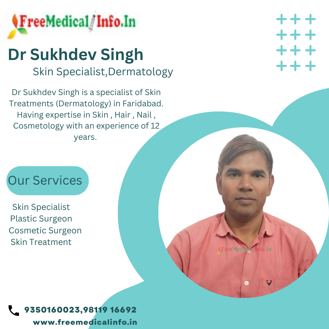 1. Dr. Sukhdev Singh : Dr. Sukhdev Singh is a well-known name in Faridabad With over 12 years of experience in the field of dermatology. He is known for her expertise in treating skin conditions such as acne, psoriasis, eczema, and rosacea. He also specializes in cosmetic dermatology and provides treatments like Botox, fillers, and chemical peels.