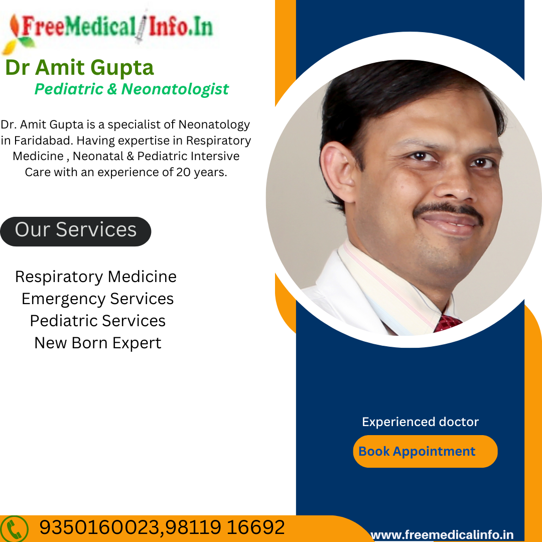 4.Dr Amit Gupta - Dr Amit Gupta is a senior consultant neonatologist at Fortis Escorts Hospital in Faridabad.Dr Amit Gupta is a specialist of Neonatology (Specialist for New Born) in Faridabad. Having expertise in Respiratory Medicine,Neonatal & Pediatric Intersive Care with an experience of 20 years.Dr. Gupta is an expert in neonatal intensive care, neonatal ventilation, and neonatal transport.