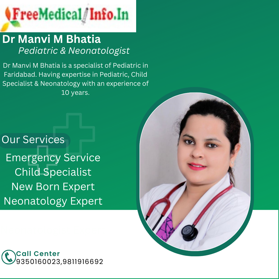 9.Dr Manvi M Bhatia - Dr Manvi M Bhatia is a specialist of Pediatric in Faridabad. Having expertise in Pediatric, Child Specialist & Neonatology with an experience of 10 years.Dr Manvi M Bhatia is a senior consultant neonatologist at Dr. Bhatia Child Care Clinic & Nav Jeevan Hospital in Faridabad. Dr. Bhatia is a highly skilled neonatologist who has been practicing for over a decade. Dr Bhatia is known for her compassionate care and expertise in managing a wide range of neonatal conditions.