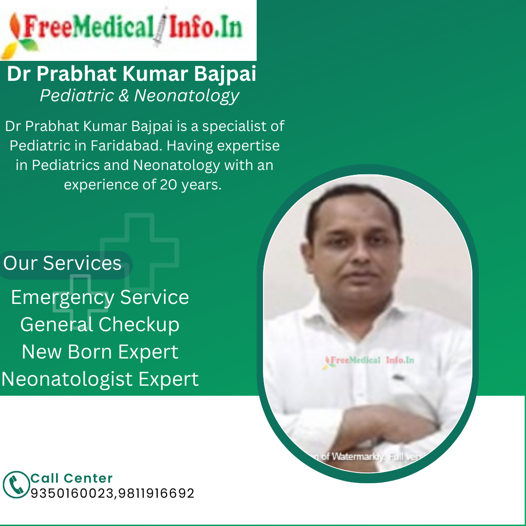 1.Dr Prabhat Kumar Bajpai - Dr Prabhat Kumar Bajpai is a specialist of Pediatric in Faridabad. Having expertise in Pediatrics and Neonatology with an experience of 20 years.Dr Bajpai is currently working at Accord Super speciality Hospital & Cure & Care Child Child in Faridabad. Dr Bajpai areas of expertise include neonatal resuscitation,ventilation, and intensive care.