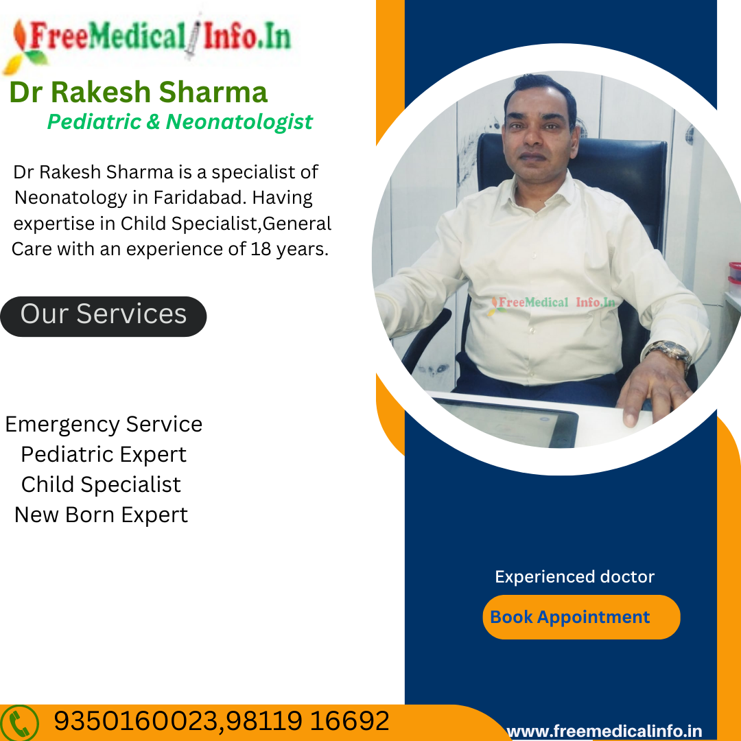 2.Dr Rakesh Sharma - Dr Rakesh Sharma is a well-known pediatrician and neonatologist in Faridabad.Dr Rakesh Sharma is a specialist of Neonatology (Specialist for New Born) in Faridabad.Dr Sharma is currently working at Aastha Hosptal in Faridabad. Having expertise in Child Specialist , General Care with an experience of 18 years. Dr Sharma has been honored with several awards for his contributions in the field of pediatrics.
