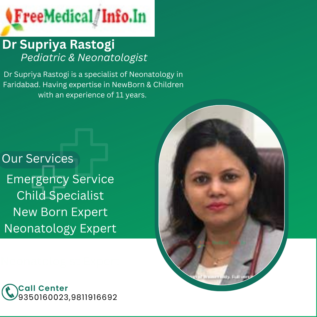 8.Dr Supriya Rastogi - Dr Supriya Rastogi is a specialist of Neonatology (Specialist for New Born) in Faridabad. Having expertise in NewBorn & Children with an experience of 11 years.Dr Supriya Rastogi is a senior consultant neonatologist at Savera Child Clinic in Faridabad.Dr. Rastogi is a highly experienced neonatologist who has been practicing for over 11 years. Dr Rastogi has received numerous awards and recognition for his work in the field of neonatology