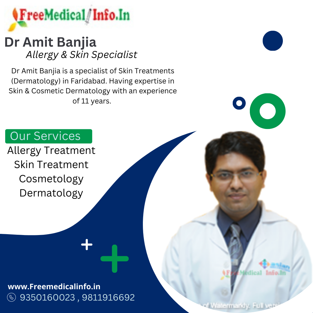 3. Dr Amit Banjia: Dr Amit Banjia is a specialist of Skin Treatments (Dermatology) in Faridabad. Dr Banjia specializes in treating allergies related to asthma, hay fever, skin allergies, food allergies. Dr Banjia is currently practicing at Asian Institute of Medical Science in Faridabad. Dr Banjia is known for his patient-centric approach to treatment and his ability to provide personalized care to each patient.