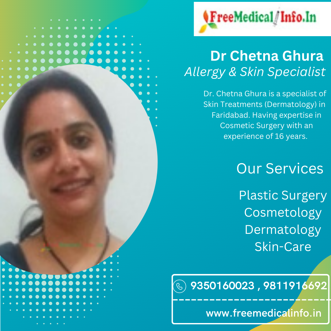 8. Dr. Chetna Ghura: Dr Ghura is currently practicing at Metro Hospital & The Apollo Clinic in Faridabad with an experience of 16 years.Dr Ghura specializes in treating allergies related to Cosmetic Surgery, skin allergies, and food allergies. Dr Ghura is known for his patient-centric approach to treatment and his ability to provide personalized care to each patient.