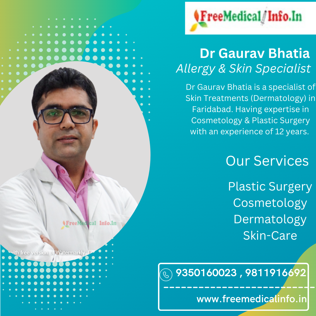 7. Dr Gaurav Bhatia: Dr Gaurav Bhatia is a specialist of Skin Treatments (Dermatology) in Faridabad. Having expertise in Cosmetology & Plastic Surgery with an experience of 12 years. Dr Bhatia is currently practicing at SSB Heart And Multispecialty Hospital in Faridabad.Dr Bhatia is known for his comprehensive approach to treating allergies and his ability to diagnose and manage complex allergic conditions.