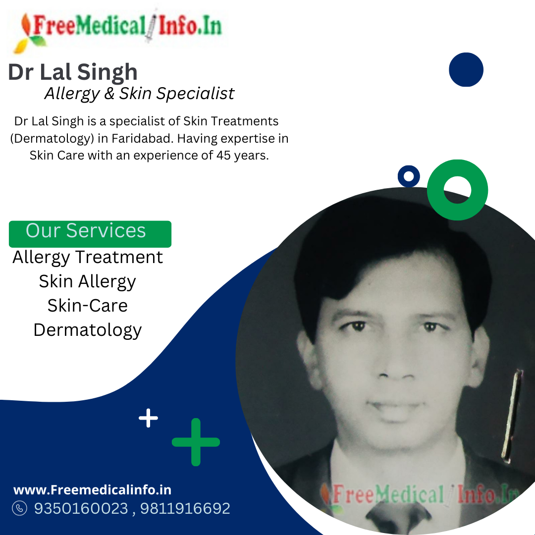 2. Dr Lal Singh: Dr Lal Singh is a specialist of Skin Treatments (Dermatology) in Faridabad. Having expertise in Skin Care with an experience of 45 years. Dr Singh is currently practicing at Lal Skin Care Clinic Hospital in Faridabad. He is known for his comprehensive approach to treating allergies and his ability to diagnose and manage complex allergic conditions.
