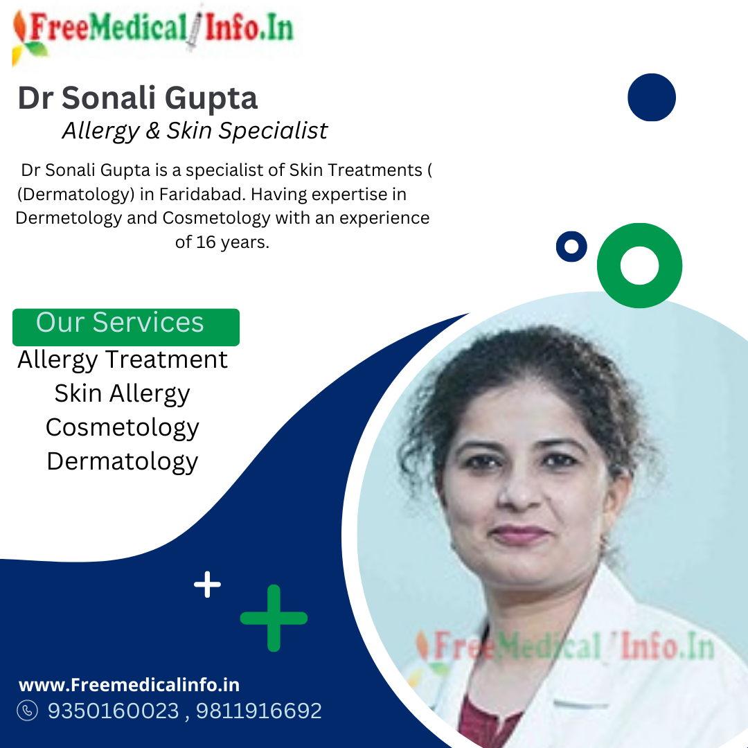 1. Dr Sonali Gupta: Dr Sonali Gupta is a renowned allergy specialist in Faridabad. Having expertise in Dermatology and Cosmetology with an experience of 16 years. Dr Banjia is currently practicing at Accord Super speciality Hospital in Faridabad. Dr Gupta is known for her expertise in treating allergies related to Cosmetology , Dermatology skin allergies, and food allergies.