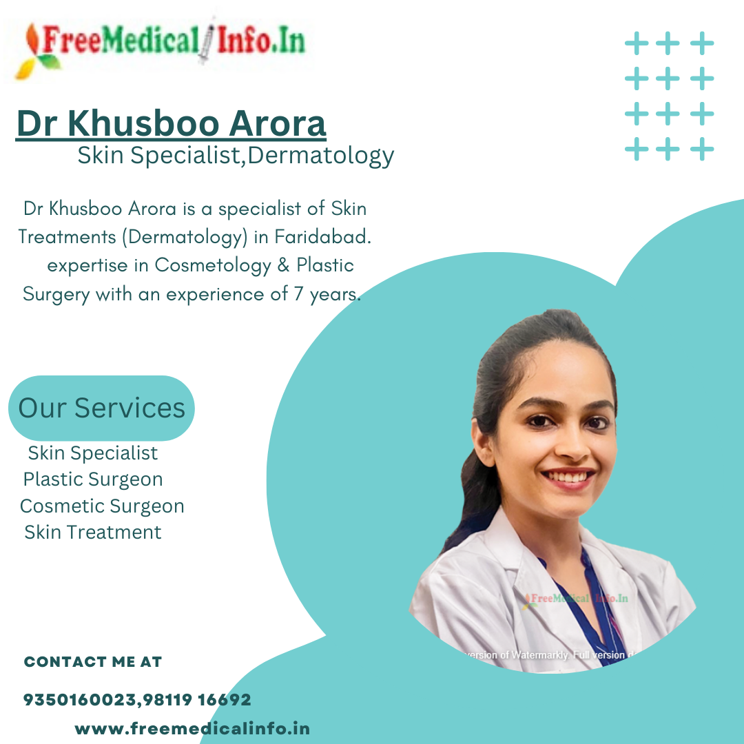 6. Dr Khusboo Arora: Dr Khusboo Arora is a specialist of Skin Treatments (Dermatology) in Faridabad. Having expertise in Cosmetology & Plastic Surgery with an experience of 7 years. Dr Arora is currently practicing at SSB Heart And Multispecialty Hospital in Faridabad. Dr Khusboo Arora is a renowned allergy specialist in Faridabad. She is known for her expertise in treating allergies related to Cosmetology & Plastic Surgery , skin allergies, food allergies.