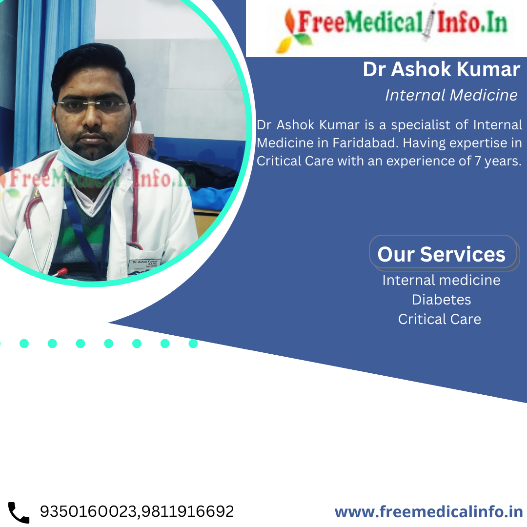 3.Dr Ashok Kumar:Dr Ashok Kumaris a specialist of Internal Medicine in Faridabad.Dr. Kumar is a consultant in internal medicine at Shankar Medicare Centre Sector 28 in Faridabad. Dr. Kumar is a well-known Internal Medicine doctor with over 7 years of experience in the field. He has a special interest in cardiology and has helped numerous patients with heart-related conditions.