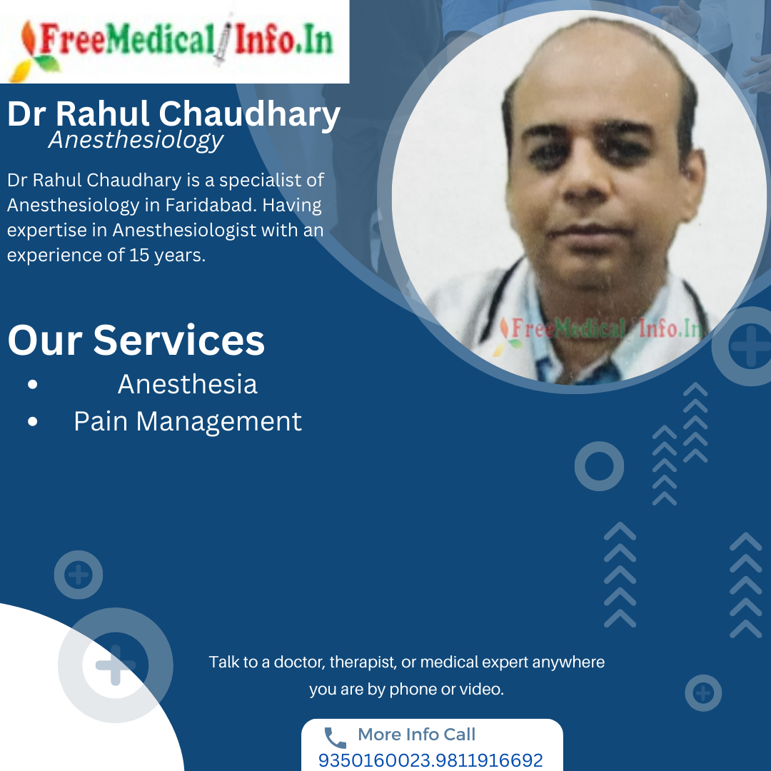 10. Dr Rahul Chaudhary: Dr Rahul Chaudhary is a specialist of Anesthesiology in Faridabad.Dr. Chaudhary is a highly skilled anesthesiologist with over 15 years of experience. He has a keen interest in regional anesthesia and has performed numerous successful nerve blocks.