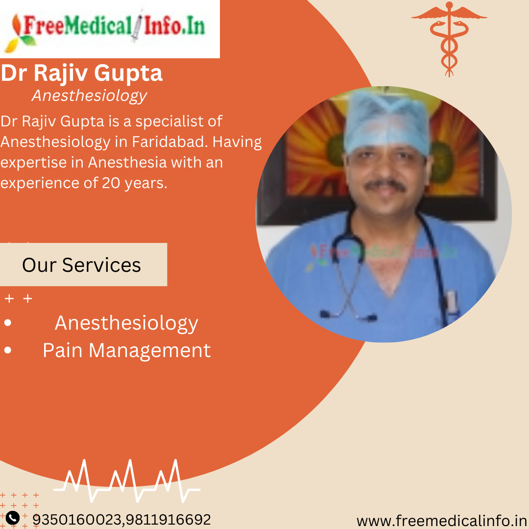 5. Dr Rajiv Gupta: Dr Rajiv Gupta is a specialist of Anesthesiology in Faridabad.Dr Gupta is a highly qualified , 20 Years experienced anesthesiologist who has worked in some of the top hospitals in the country. He is known for his calm demeanor and ability to handle critical cases with ease.