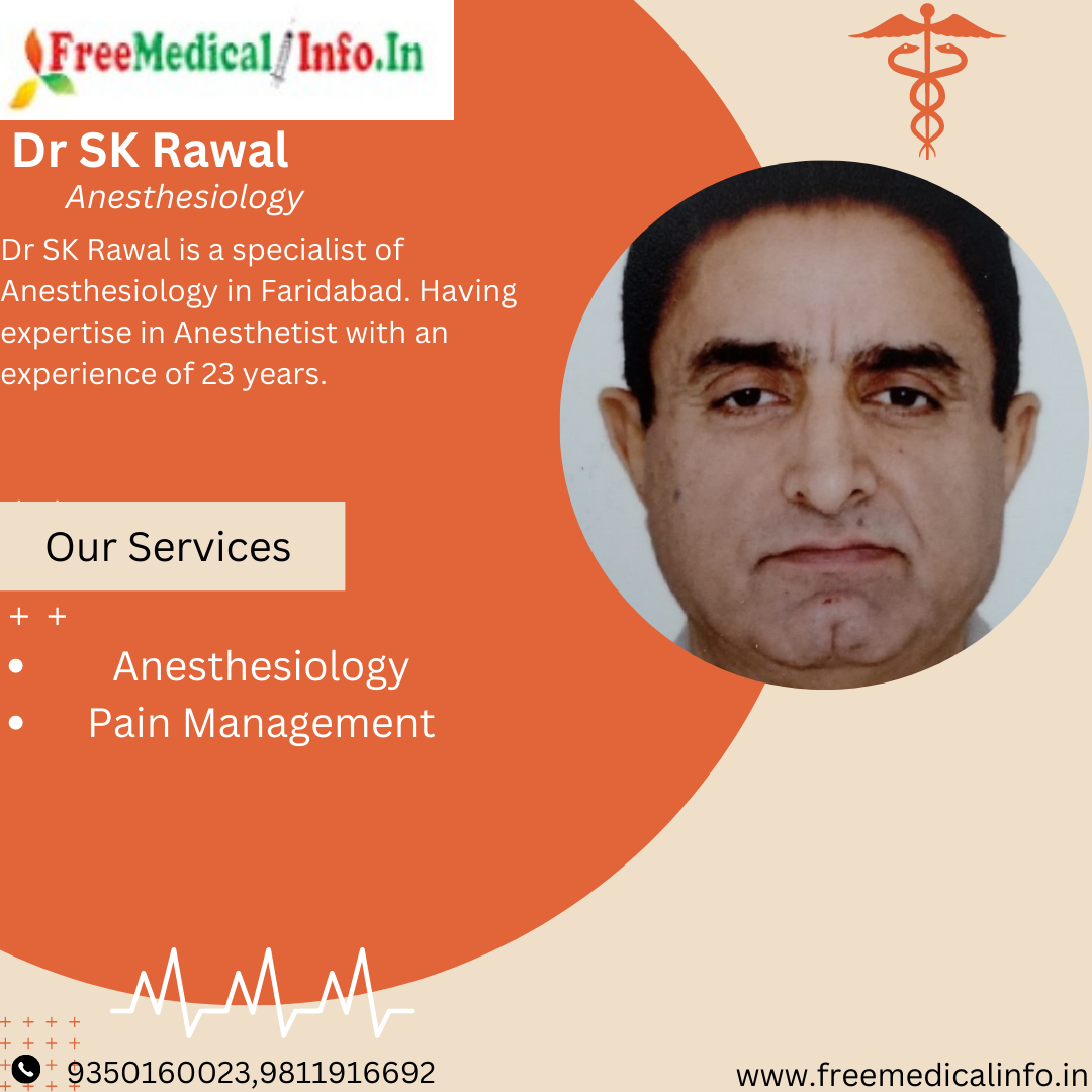 4. Dr SK Rawal: Dr SK Rawal is a specialist of Anesthesiology in Faridabad.Dr. Gupta is a consultant anesthesiologist with over 23 years of experience. He has a keen interest in regional anesthesia and has performed numerous successful nerve blocks.