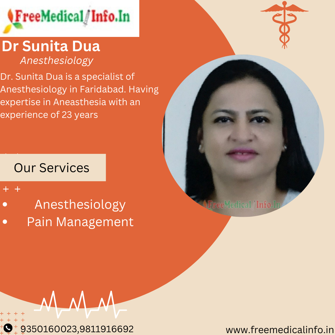 3.Dr Sunita Dua: Dr. Sunita Dua is a highly skilled anesthesiologist with over a 23 decade of experience. She has trained in some of the best institutions in India and has a special interest in pain management.
