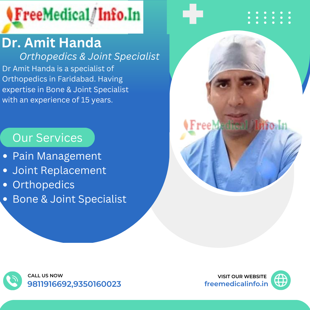 12. Dr Amit Handa - Dr Amit Handa is a specialist of Orthopedics in Faridabad. Dr Amit Handa is a renowned orthopedic surgeon with over 15 years of experience. He is the Senior Consultant of Bone & Joint Specialist at Manavta Hospitals a leading orthopedic clinic in Faridabad. Dr. Handa specializes in joint replacement surgery, spine surgery, and sports medicine. He has received several awards and accolades for his outstanding contributions to the field of orthopedics.