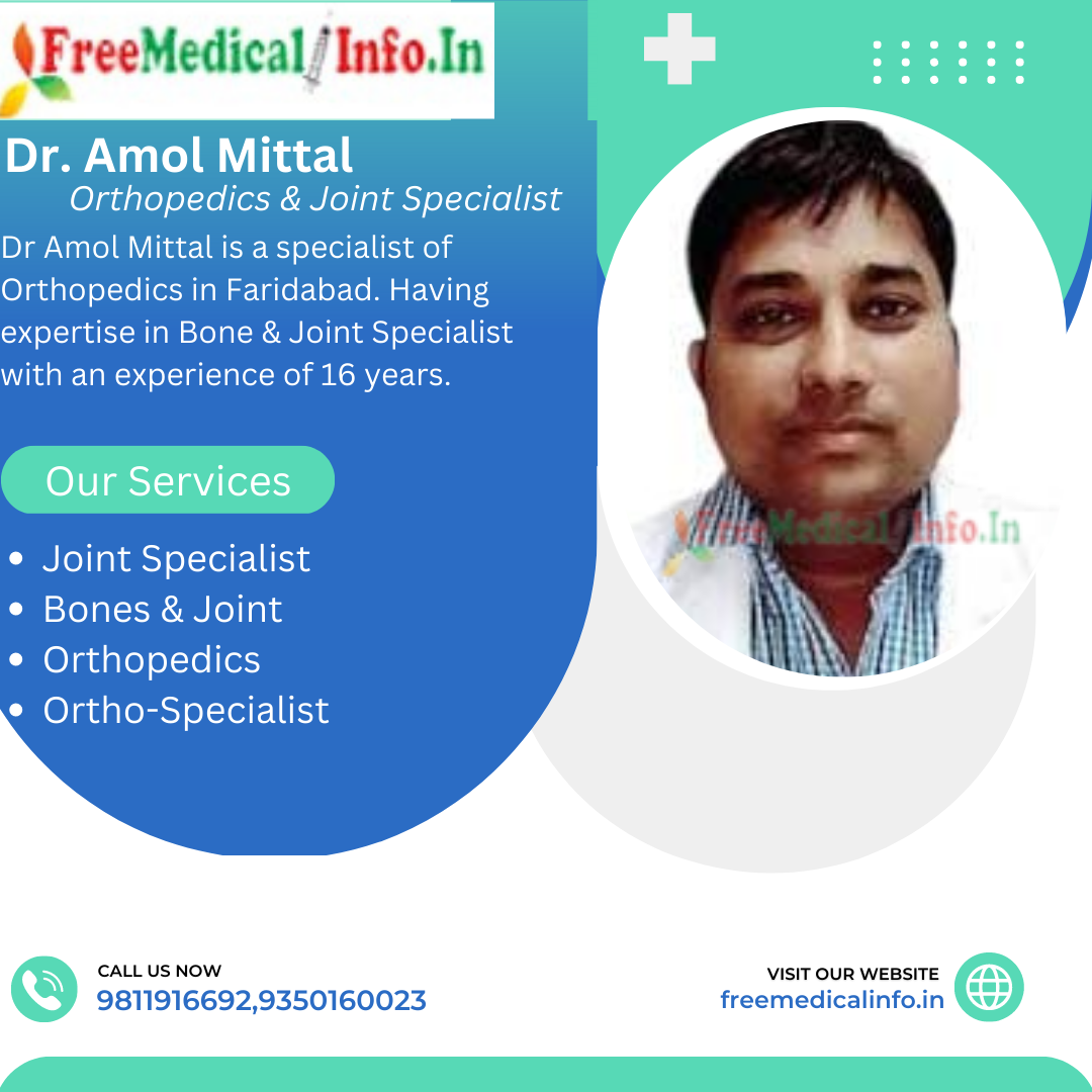 7. Dr. Amol Mittal - Dr. Amol Mittal is a specialist of Orthopedics in Faridabad. Having expertise in Bone & Joint Specialist with an experience of 16 years.Dr Amol Mittal is a renowned orthopedic surgeon with over 16 years of experience. He is a consultant orthopedic surgeon at ACE Hospital in Faridabad. Dr. Mittal specializes in Bone & Joint Specialist, spine surgery, and sports medicine. He is known for his expertise in complex surgeries and his commitment to patient care.