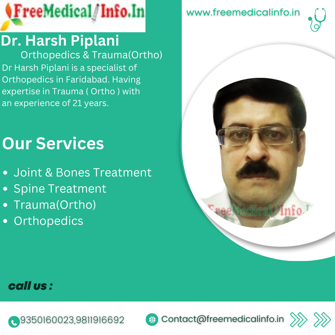 3. Dr. Harsh Piplani - Dr Harsh Piplani is a well-known orthopedic surgeon with over 21 years of experience. He is the director of Joint & Bone Solutions, a state-of-the-art Vardaan Hospital ( NIT 3 ) in Faridabad. Dr. Piplani specializes in joint replacement surgery, sports medicine, and trauma surgery. He is known for his personalized care and attention to detail.