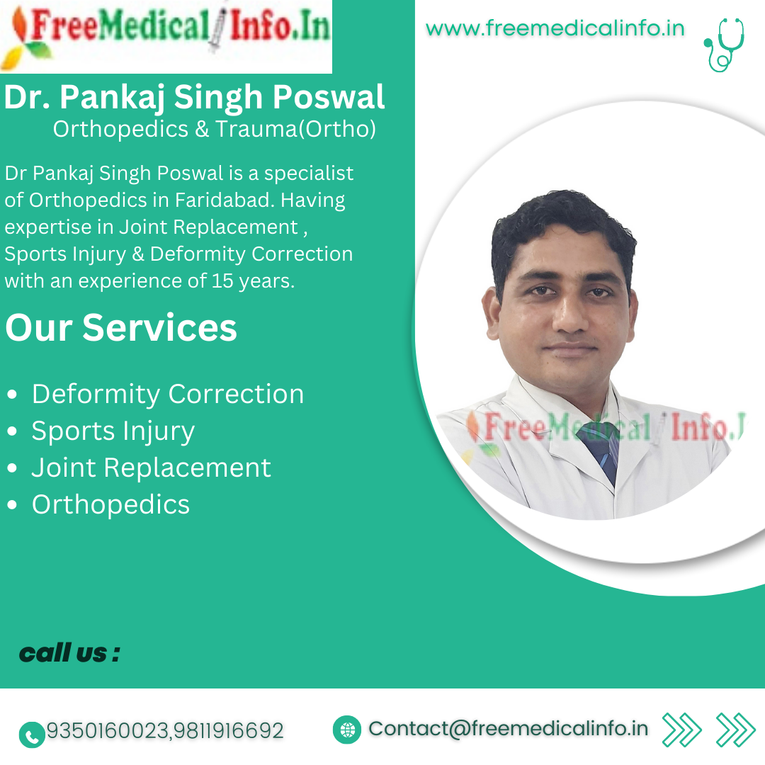 4. Dr. Pankaj Singh Poswal - Dr. Pankaj Singh Poswal is a specialist of Orthopedics in Faridabad.Dr. Ashish Garg is a highly respected orthopedic surgeon with over 15 years of experience. He is a consultant orthopedic surgeon at Dr Poswal Hospital, QRG Super Speciality Hospital in Faridabad. Dr. Garg specializes in joint replacement surgery , sports medicine , Joint Replacement , Sports Injury & Deformity Correction. He has been recognized for his outstanding contributions to the field of orthopedics.