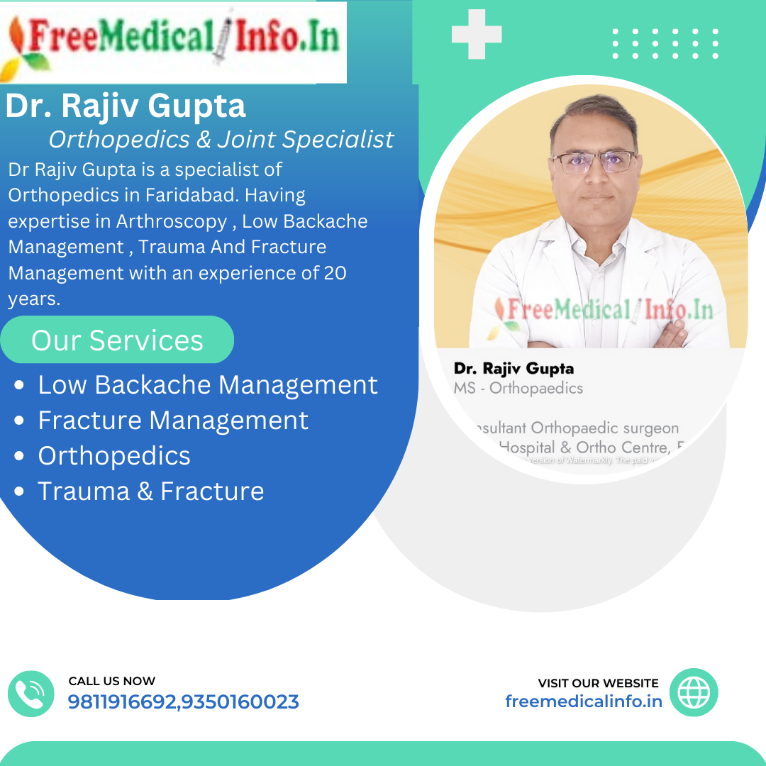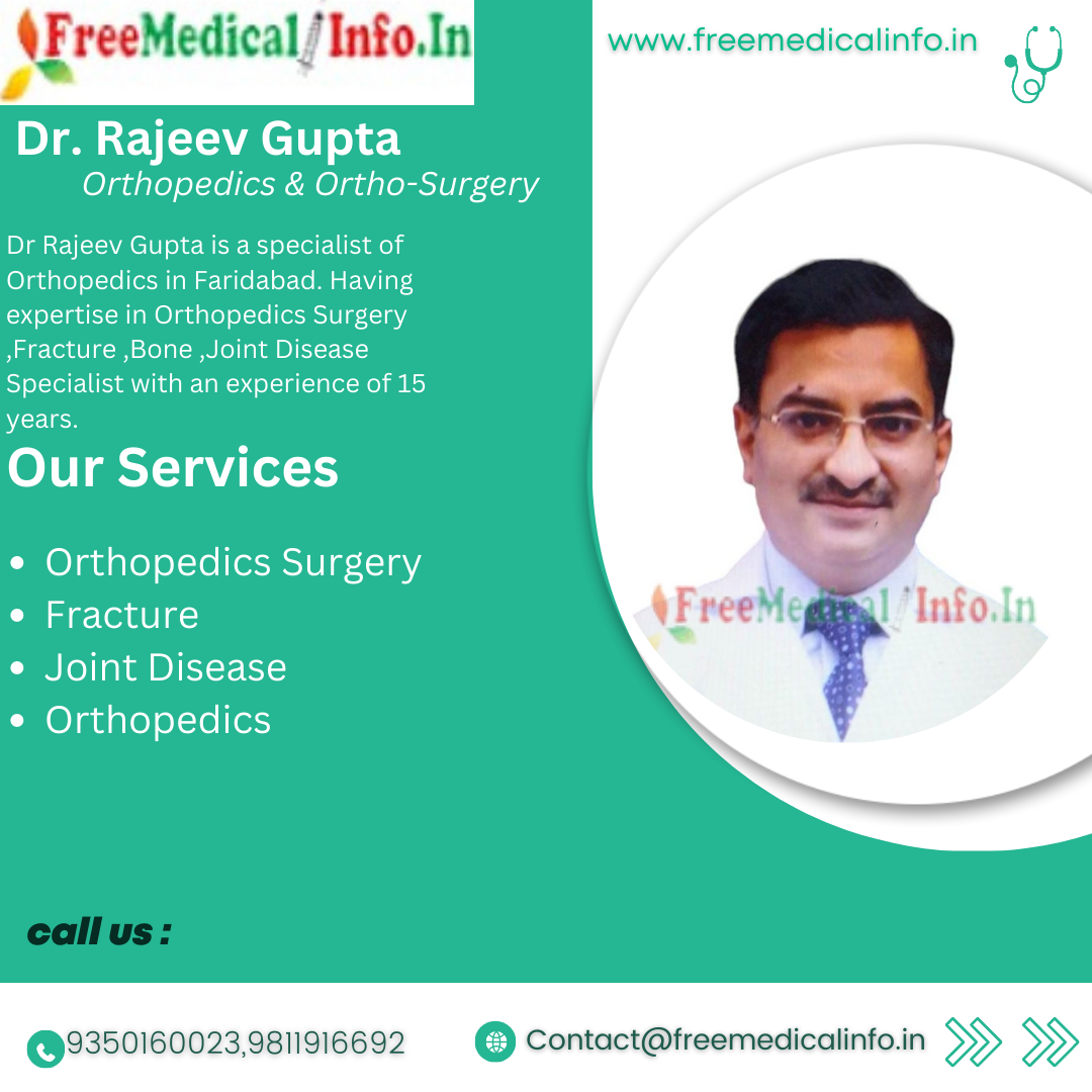 5. Dr. Rajeev Gupta - Dr. Rajeev Gupta is a specialist of Orthopedics in Faridabad. Dr Rajeev Gupta is a well-known orthopedic surgeon with over 15 years of experience. He is the founder and director of Life Hospital in Faridabad. Dr. Gupta specializes in Orthopedics Surgery ,Fracture ,Bone ,Joint Disease Specialist.