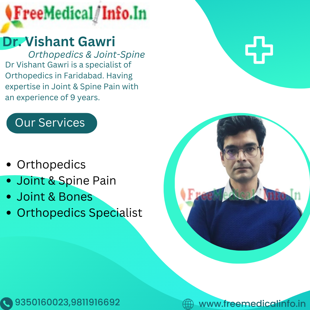 8. Dr. Vishant Gawri - Dr. Vishant Gawri is a specialist of Orthopedics in Faridabad.Dr Vishant Gawri is a highly respected orthopedic surgeon with over 9 years of experience. He is a Consultant of Anjuli Nursing Home in Faridabad. Dr.Gawri specializes in joint replacement surgery, spine surgery, trauma surgery. He has received several awards and accolades for his contributions to the field of orthopedics.